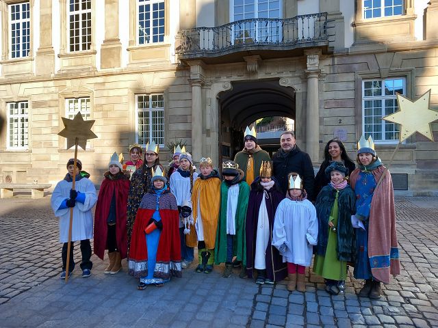 Am Montag, 05. Januar waren wir zu Gast beim Esslinger Rathaus und wurden vom Bürgermeister Yalcin Bayraktar persönlich begrüßt. Wir haben der Stadtverwaltung die besten Wünsche für 2026 überbracht und den Segen hoch über der Eingangstüre geschreiben. Finanzen und Süßies gab es natürlich auch. Ganz lieben Dank dafür! Und schon eilten die königlichen Hoheiten weiter zur Polizeidirektion Esslingen. Auch eine gute Tradition, dass wir den Menschen bei der Polizei Danke sagen, den Segen bringen und von vielen Mitarbeiter:innen im Foyer empfangen wurden. Auch hier ein herzliches Dankeschön für die Unterstützung der Aktion und die Süßigkeiten.