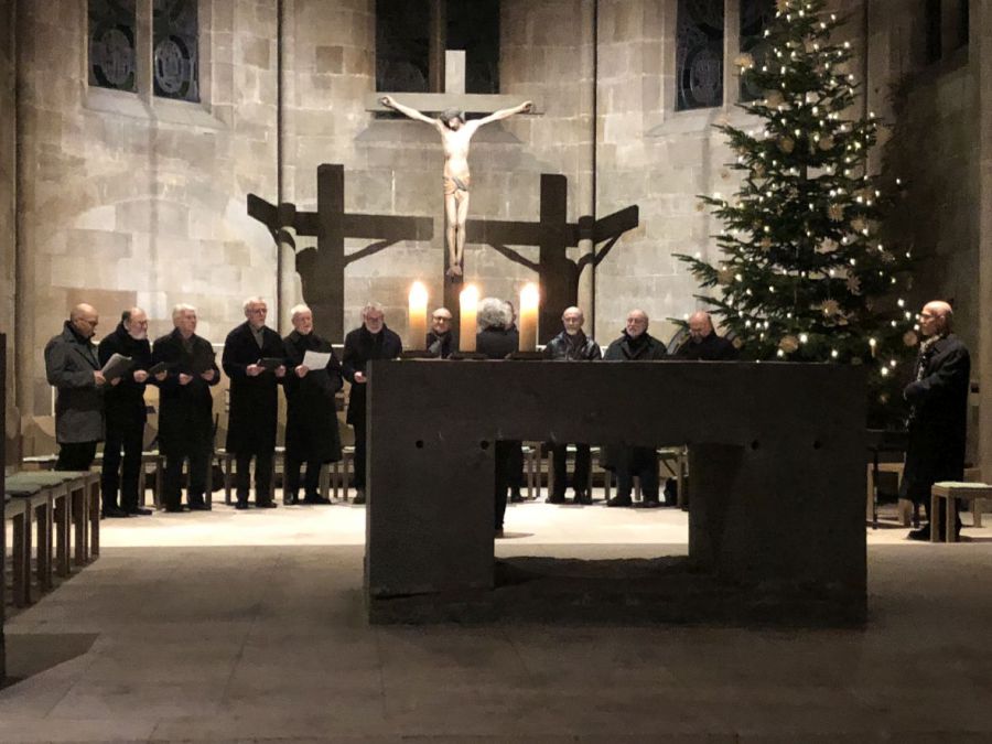 Am Vorabend vor Silvester durften die 70 – 80 Konzertbesucher:innen noch einmal innehalten und Weihnachten nachspüren. Die Schola Gregoriana und Thomas Reil, Klarinette boten unter der Leitung von Kirchenmusikdirektor Felix Muntwiler einen musikalischen Hochgenuss mit gregorianischen Chorälen und ausgesuchten Stücken für Klarinette und Klavier. Hier die schlichte Strenge der aus dem 8. Jahrhundert stammenden gregorianischen Choralmusik, einstimmig und unbegleitet, sie berührt durch ihren meditativen Charakter auch heute noch viele Menschen.