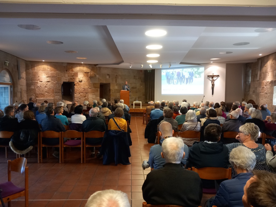Als der Diözesanrat, also das Kirchenparlament, der Diözese Rottenburg-Stuttgart im vergangenen Herbst die Eckpunkte für die neue Struktur der Diözese festgelegt hatte, war klar, dass dies für die einzelnen Gemeinden Veränderungen bedeutet. Auch für die Esslinger Gemeinden. Ende Januar wurden nun Vertreter:innen der Einzelgemeinden in Wendlingen informiert, wie eine mögliche Struktur aussehen könnte. Ob am Ende das Dekanat Esslingen-Nürtingen aus 2 oder 4 größeren Gemeinden besteht, das müssen in den nächsten Wochen die Gemeinden für sich klären. Bis Jahresende soll dann zumindest der strukturelle Plan stehen – dann folgen die Pastoralen Schwerpunkte und das Zusammenwachsen der bisherigen Einzelgemeinden. Es war also Zeit, dass man auch die Gemeindemitglieder informiert. Eingeladen wurde am vergangenen Sonntag zur Gemeindeversammlung in den Salemer Pfleghof. Es kamen gut 150 interessierte Gemeindemitglieder – nachdem sie bei einem beeindruckenden Gemeinsamen Esslinger Sonntag – gestaltet von den Esslinger Ministrantinnen und Ministranten und Pfarrer Stefan Möhler eingestimmt wurden. Natürlich drückt die Diözese auch das Geld und die Zahl der pastoralen Mitarbeiter schrumpft in den folgenden Jahren. Keine guten Nachrichten in den Ohren der Menschen. Und dennoch ist es besser sich den Aufgaben zu stellen, denn noch kann man gestalten und wird gehört. „Machen wir nix, dann werden Andere entscheiden, wie es geht!“, so Pfarrer Möhler in seiner Präsentation. Nach einer kleinen Gesprächspause, bei der in kleinen Gruppen das Gehörte besprochen werden konnte, traf man sich nochmals zu einer Fragerunde im Plenum. „Mutig sind 2 große Kirchengemeinden – auch wenn dann die Wege weiter sind. Aber dann braucht es kluge pastorale Konzepte.“ Oder vielleicht doch besser 4 kleinere Gemeinden? Wichtig ist es, dass wir die Menschen mitnehmen und ein neuer Austausch wird wieder stattfinden – so der Ausblick von Gabriele Alf-Dietz, der gewählten Vorsitzenden des Gesamtkirchengemeinderates. Die Kirchengemeinderätinnen und -räte waren im Plenum mit dabei und hörten zu. Auf Sie kommt nun die Aufgabe der Entscheidung zu.